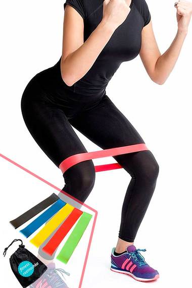 В комплект фитнес резинок входит 5 лент различной нагрузки: